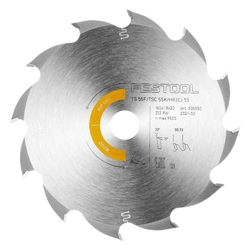 Festool 12-Tooth Panther Wood Rip Cut Saw Blade For TSC 55 K Track Saw 205559
