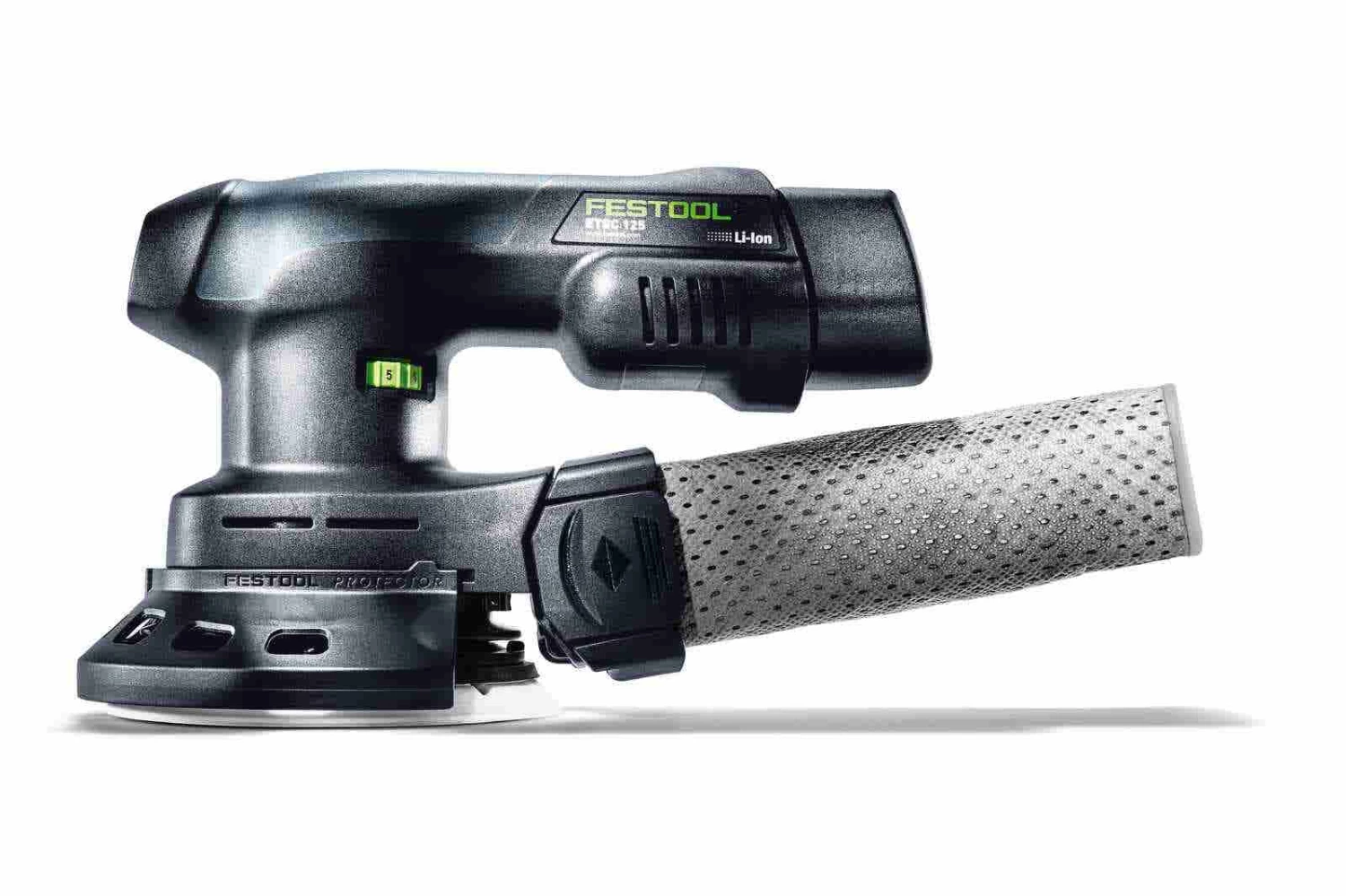 Effortlessly transition from corded to cordless without compromising performance. Balanced with a unique ergonomic battery for optimum performance and handling. The ETSC 125 provides the same functionality of its corded counterpart but with hybrid power options – use it cordless or corded. The 18-volt Ergo battery provides up to 30 minutes of runtime at full power. Integrated, removable Protector provides protection to abutting surfaces as well as the pad for up close sanding applications.