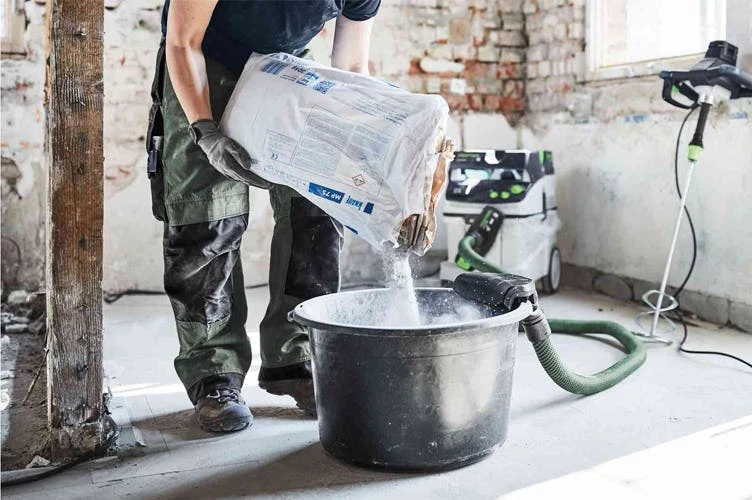 The MX extraction system is simply clamped onto the edge of the mixing bucket so that the dust disappears into the extractor from the moment the mixing material is poured in. You no longer have to battle with clouds of dust while stirring. And after your work is done, the job site is as clean as before, saving you valuable time.